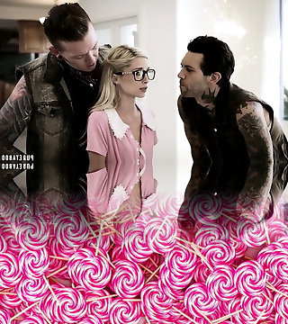 teaser de la pipe aux cheveux clairs, rebecca ebony est en train de sucer et de ramper la bite pendant un plan à trois décontracté