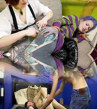 lécher la chatte et aller knuckle profond pour une grosse petite amie, poilu trou béant avale un poing, maison lesbo orgie