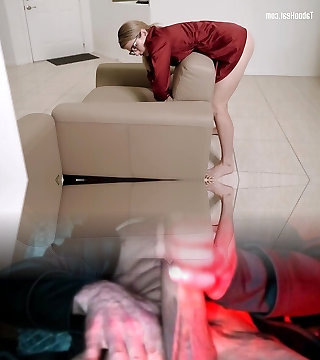 une adolescente ennuyeuse à lunettes carmen mange un sperme aromatisé à la pomme après une baise torride sur la table