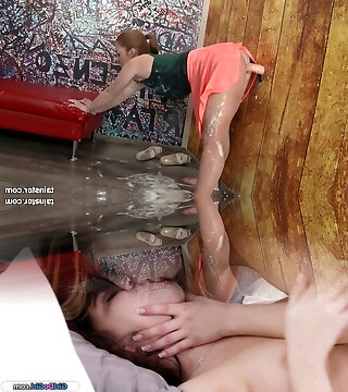 lauren phillips et sa copine aux cheveux clairs deviennent folles dans la chambre d'amis du glory hole