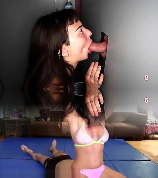 jolie blonde suce une bite à travers un trou de gloire juste au bureau puis se fait baiser par son patron excité