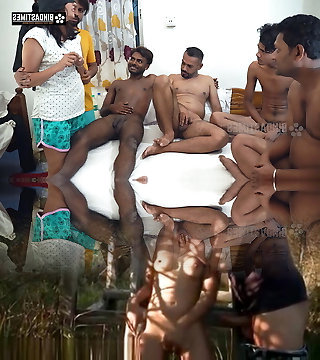indian desi bhabhi torride et lubrique a un gang-bang avec 5 hommes costauds et des éjaculations (hindi audio)