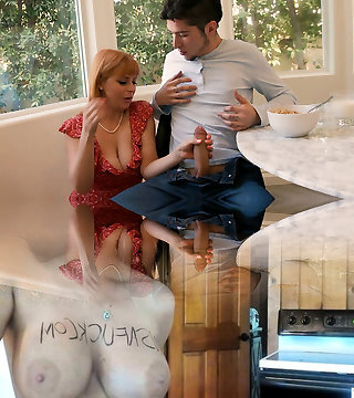 la demi-soeur aux gros seins donne un gros nichon à son demi-frère puis chevauche sa bite, il éjacule en elle pendant que ses seins rebondissants sont gros