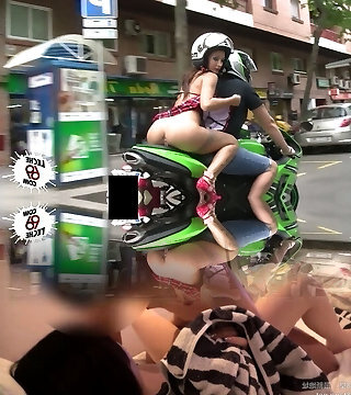 la tarte sans pantalon en mini-jupe super courte susy gala est sur une moto avant l'orgie sauvage