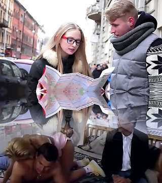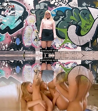 Kinky straight haired blonde gal in nerdy glasses gets fucked rear end