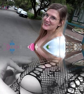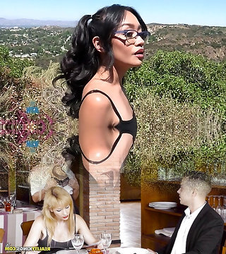 Kinky brunette Jade Kimiko teases outdoors and gets drilled