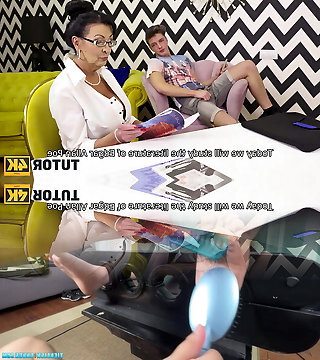 Horny schoolteacher in stockings Ariel Anderssen demonstrates striptease at the blackboard