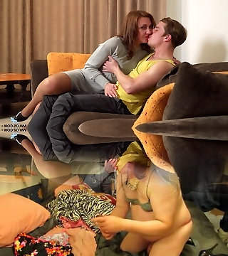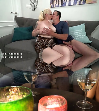 Mature blondie with her glorious mature sex acquaintance on the couch