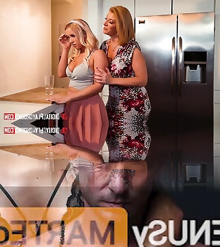 Busty blonde barbie dame Nicolette Shea sucks and tears up in the kitchen