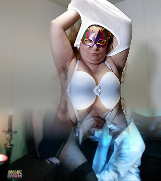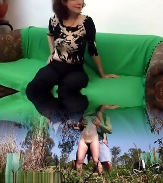 Pretty woman wanted a gigantic pecker, but found only a huge white radish. Torn Up myself in the pussy right on the chair