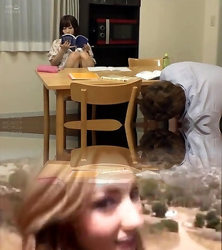 Nice girl wearing Japanese Schoolgirl uniform dry humping him till he cums in his underwear grinding doggystyle