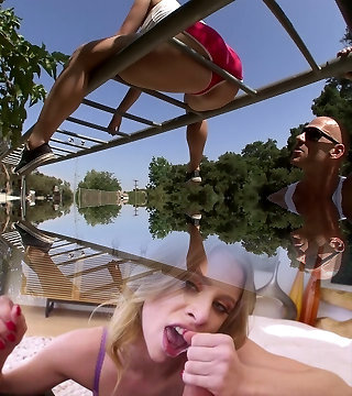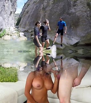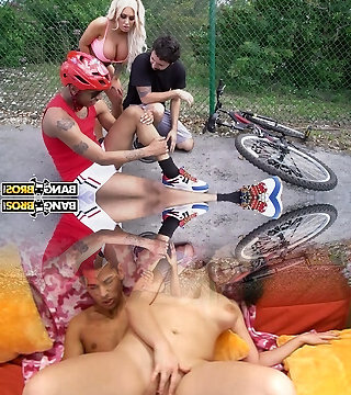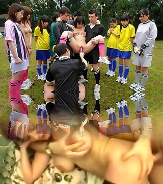 A group of Asian individuals engage in an outdoor sexual action featuring Sara Saijo, a jaw-dropping and alluring Asian gal.