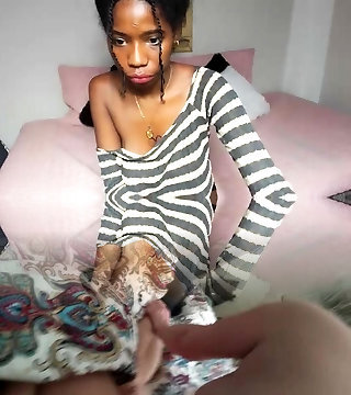 dünnes lockiges ebenholzbaby mit kleinen titten saugt und reitet beim casting gekonnt kräftigen bwc