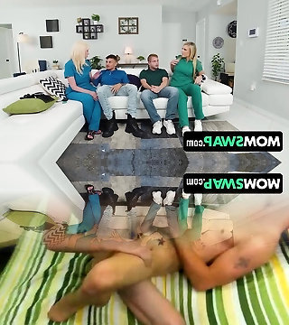 vollbusige krankenschwester mit phatem hintern hilft prüder brünetter milf und ihrem stiefsohn, das vergnügen des analsex zu begreifen