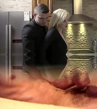 glücklicher angestellter wird von vollbusiger hausfrau verführt und mit entzückendem kopf behandelt