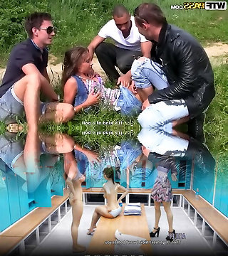 Seductive dolls with natural tits getting banged gonzo at the beach in a infatuating group sex