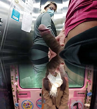 Japanese smallish teen Aki Hoshino shopping and demonstrating off in the underground parking lot