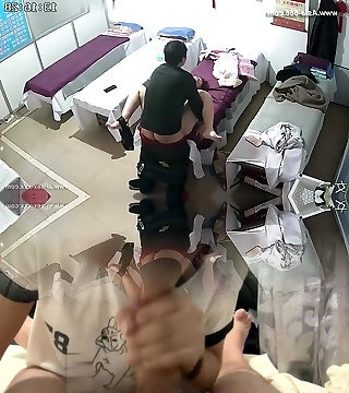 Sexy Babe getting horny while kneading a masculine guy caught by cctv.