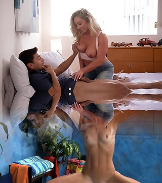 Brunet mother Reagan Foxx gives a excellent blowjob to her stepson