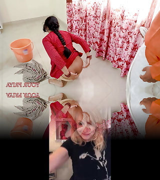 Hindi Glorious 55y Old Desi Maid Gets Stuck Under Couch When She Cleaning Room Then Owner Huge Fuck & Give Something Behind