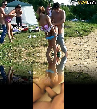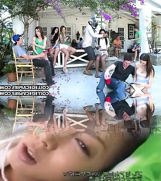 Hardcore gang fuck with naughty Japanese nymphs in the open air, heating up the Hardcore scene.