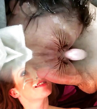Sexually charged honies give a rimjob and fellatio to one lucky man