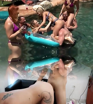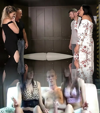 Sexy and nasty swinger wives enjoy taking hard dicks in jaws and deep throating good while the cuck husband is watching