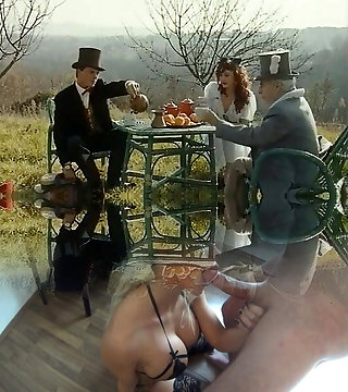 Hot vintage brunette sexy babe blows man meat and bends over